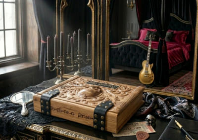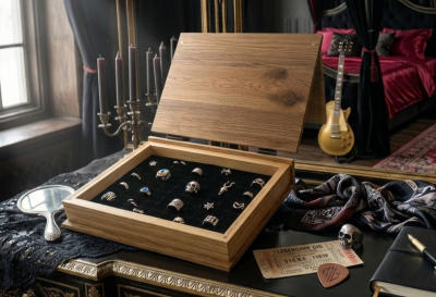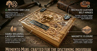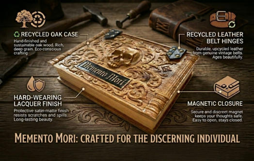 Forged from upcycled leather and solid wood, our gothic ring and jewellery boxes blend dark elegance with sustainable craft. CNC and laser precision create intricate detail, while traditional hand-finishing ensures transforming upcycled materials into heirloom pieces with a dark, timeless edge ensuring every piece feels as powerful as the treasure it protects.